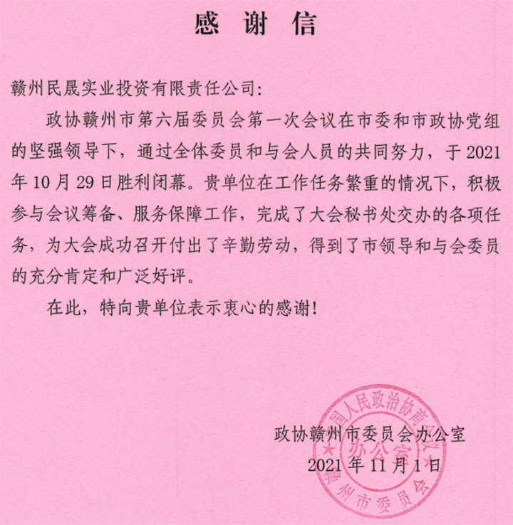 (民晟實業(yè)公司收到市人大、市政協(xié)的感謝信)