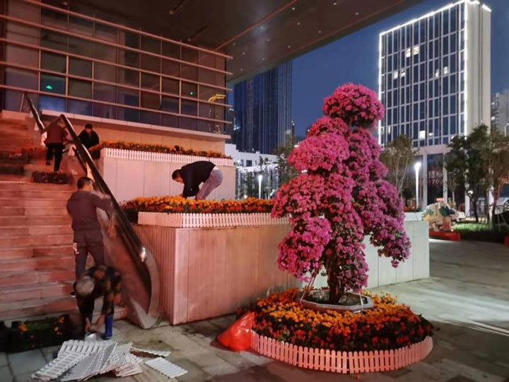 工程公司項目部克服當前人員少、項目建設(shè)工作任務重的困難,安排專人日夜施工,及時完成了外圍綠化提升,聯(lián)合民晟實業(yè)公司實施氛圍營造工程,打造了一個莊重喜慶的會場氛圍。