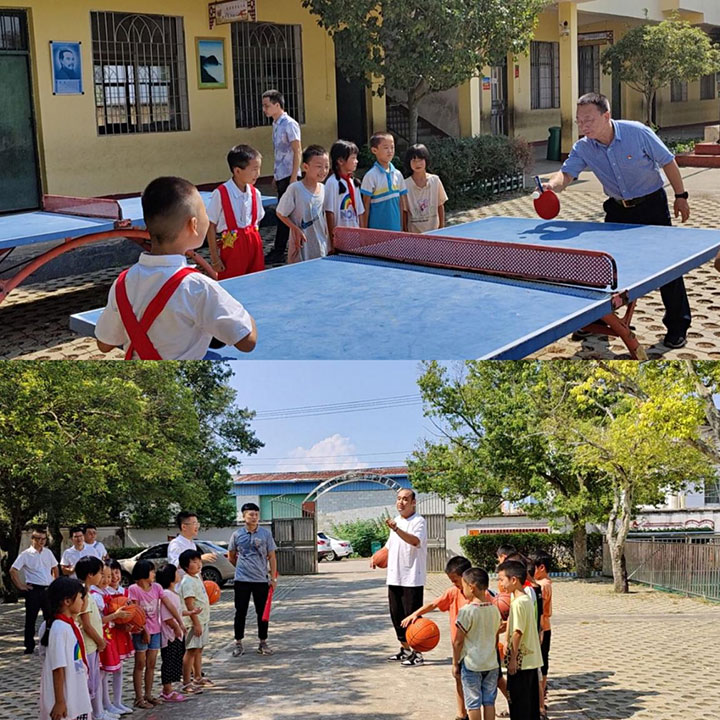 本次活動分兩個階段開展。第一階段,以愛國主義教育為切入點,分別在良田小學和東山小學開展。黃家偉帶領團員與全體師生開展升國旗、唱國歌活動,在激昂的歌聲中向國旗敬禮、向祖國致敬。隨后,黃家偉代表集團黨委向兩所學校捐贈物資,用于改善當?shù)剞r(nóng)村教學條件。在學生們課間休息時間,團員們還陪伴學生們上了一堂豐富有趣的體育課。團員們還與學校老師進行交流座談,表達了關心與寄語。